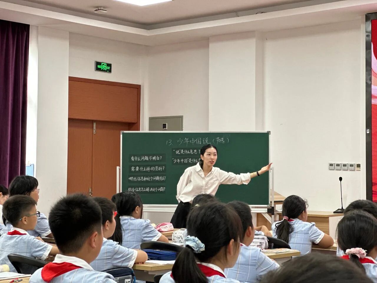 在《少年中國說》的教學中,沈家瑩先引導學生梳理上一節(jié)課的學習路徑,再指導學生用同樣的方法學習課文。從課題出發(fā),引導學生提出問題,結(jié)合資料理解課題。再聚焦少年中國與中國少年的關(guān)系,分析“故”字邏輯,讓學生在“找、讀、議”中運用“規(guī)則”,體會梁啟超對少年的殷切期望,激發(fā)為國家富強而奮斗的使命感。
