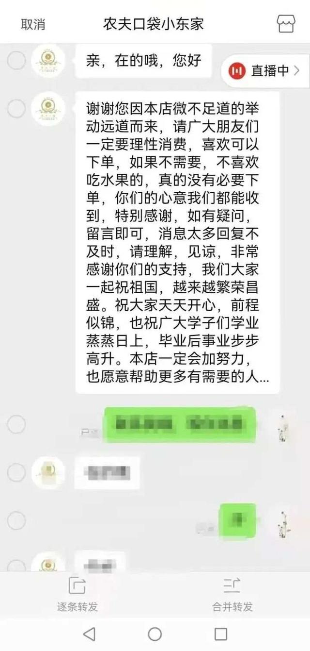 現(xiàn)在,一進(jìn)入這家網(wǎng)店,客服就先會(huì)發(fā)來(lái)一段提醒:“請(qǐng)廣大朋友們一定要理性消費(fèi)……我們大家祝祖國(guó),越來(lái)越繁榮昌盛。祝大家天天開心,前程似錦,也祝廣大學(xué)子們學(xué)業(yè)蒸蒸日上,畢業(yè)后事業(yè)步步高(6.720, -0.02, -0.30%)升。”
