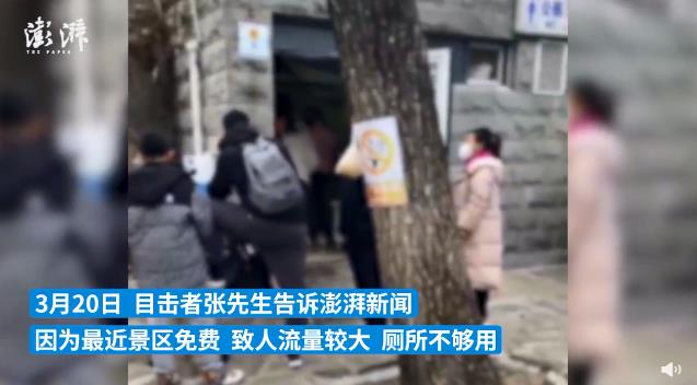 3月18日,泰山景區(qū)一男廁擠滿女士的視頻引發(fā)關注。目擊者稱,近日免費致人流量大,當天人擠人,管理缺位。景區(qū)回應,會采取措施限制人流,出讓部分男廁給女性使用。