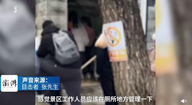 張先生稱:“其實可以理解,本身就路程比較遠,廁所也比較少。男廁所有時候人不多,可以讓女性先用一下,主要還是景區(qū),如果能有工作人員在旁邊管理、引導一下會好一些,否則游客擅自行為,很容易發(fā)生沖突。”