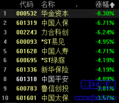 另外,保險股和地產(chǎn)股跌幅也不小,中國人保跌超6%,中國人壽、中國平安跌逾4%,萬科A跌超5%: