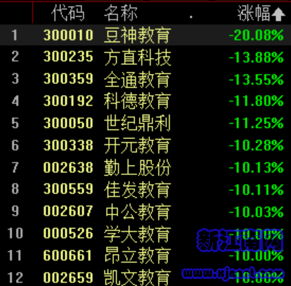 教育股方面,豆神教育、勤上股份、學大教育等十余股跌;虻10%:
