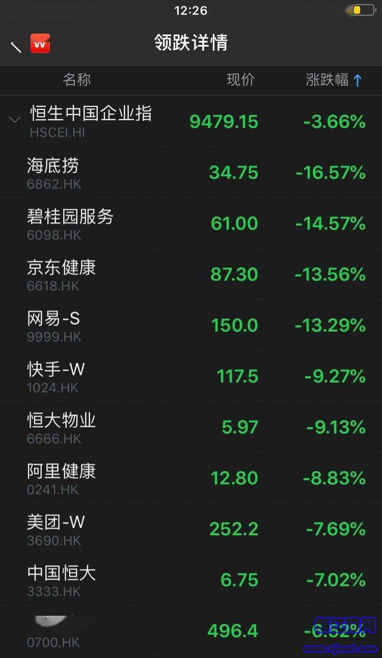 另外,海底撈早盤收跌16.57%,京東健康跌13.56%,網(wǎng)易跌13.29%,快手跌9.27%,美團跌7.69%,中國恒大跌7%,京東集團跌6%,阿里巴巴跌4.73%。
