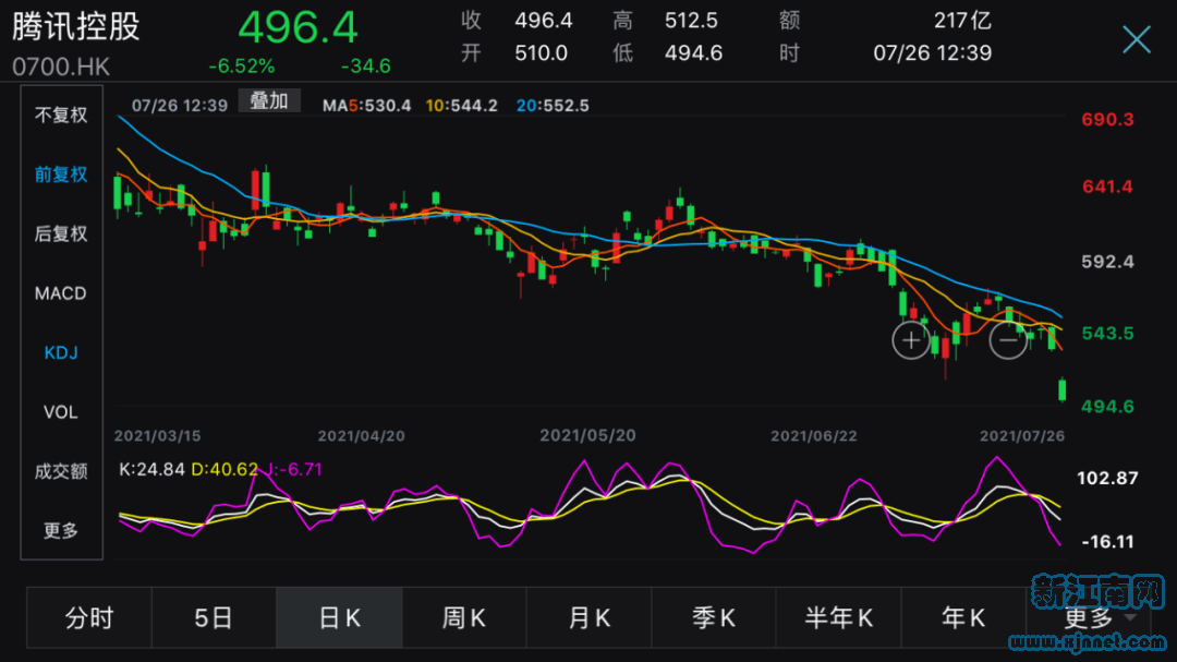 個股方面,騰訊控股早盤收跌6.52%,股價跌破500港元,市值蒸發(fā)3320港元(約合人民幣2770億元)。此前市場監(jiān)管總局依法對騰訊控股有限公司作出責令解除網(wǎng)絡音樂獨家版權等處罰。
