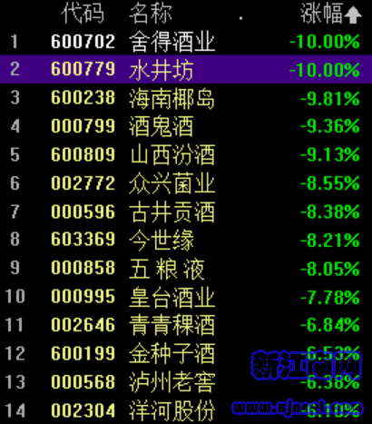白酒股板塊,水井坊、舍得酒業(yè)跌停,其中貴州茅臺跌5.24%,市值蒸發(fā)1249億元。