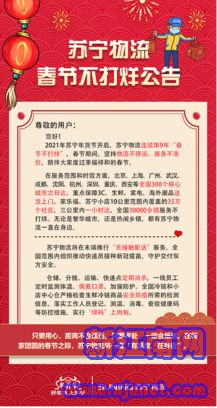 春節(jié)期間,消費者需求保障就顯得極為重要。為此蘇寧易購宣布春節(jié)服務不打烊,蘇寧易購門店、蘇寧客服、蘇寧物流、蘇寧幫客等將提供全流程、全方位保障。