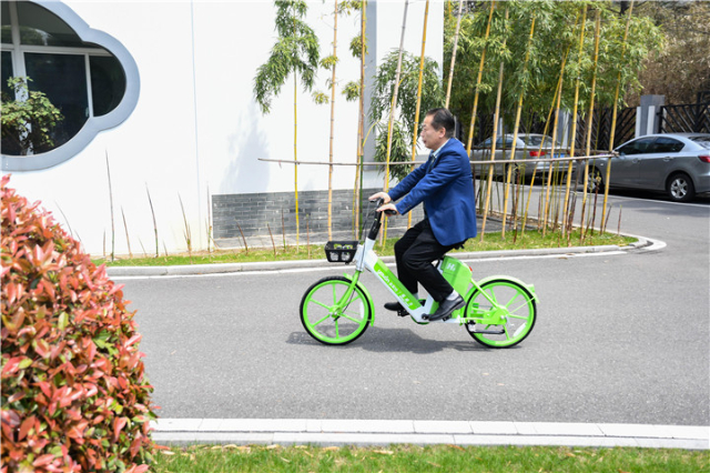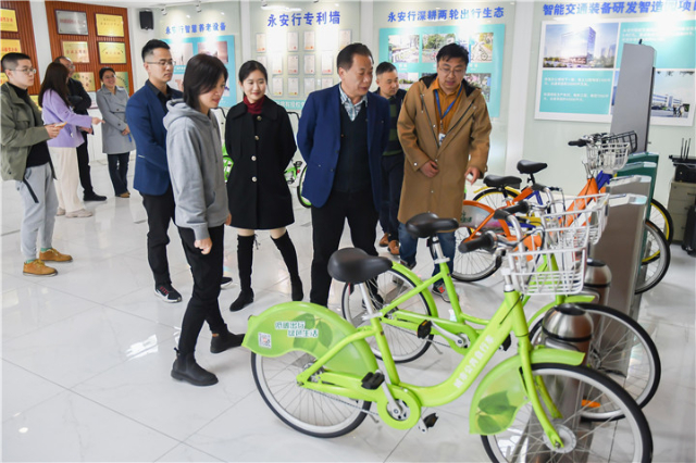 在永安行一樓展示廳,劉湘生秘書(shū)長(zhǎng)參觀了解了永安行不同時(shí)期共享出行的迭代產(chǎn)品,并在園區(qū)試騎永安行推出的全新產(chǎn)品——“氫燃料電動(dòng)車(chē)”。