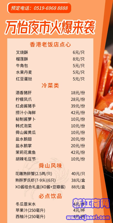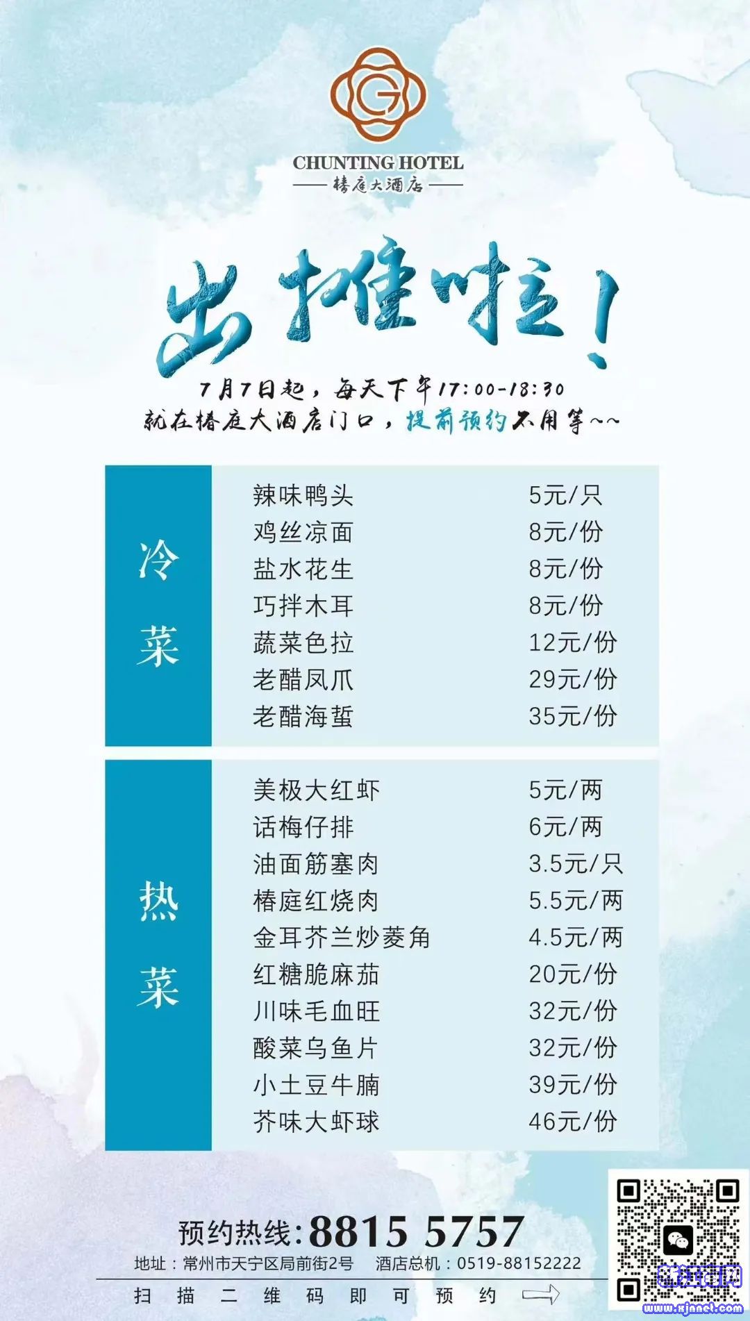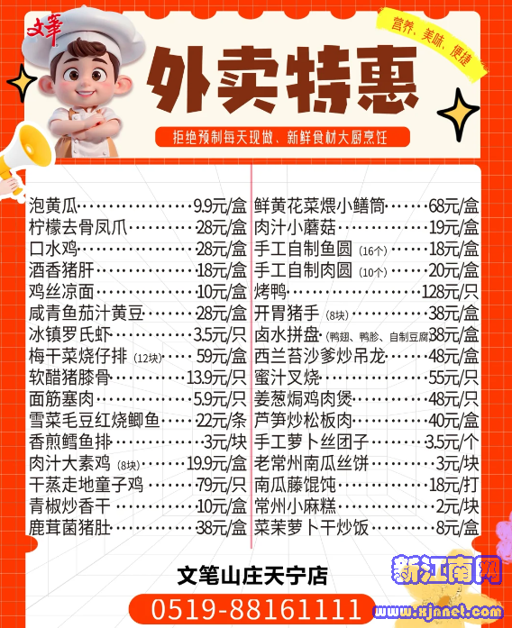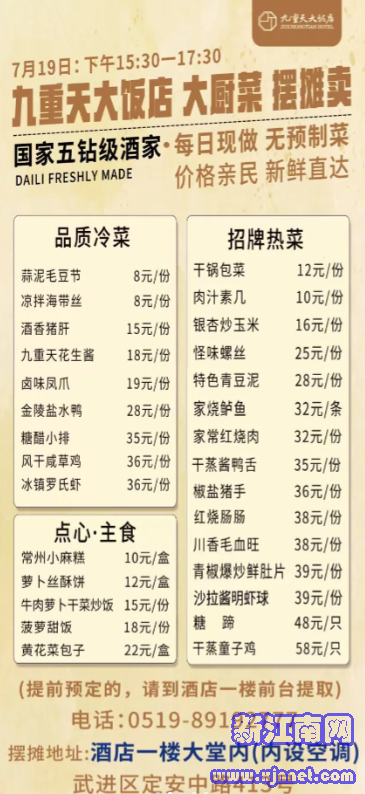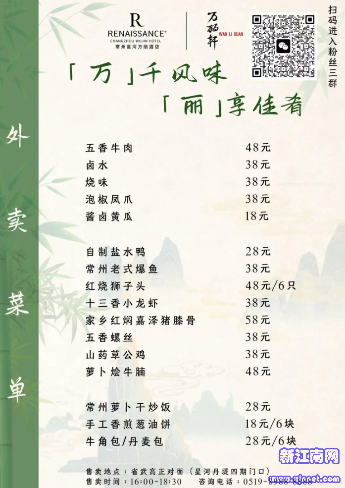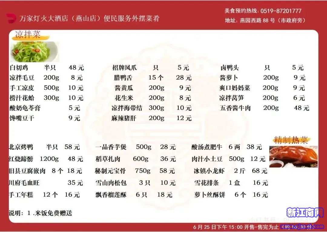 外擺時間:每天16:00-17:30;外賣滿300元五公里內免費配送(聯(lián)系電話:0519-88551777;88552777)zS5新江南網(wǎng)|江南區(qū)域知名綜合門戶網(wǎng)
