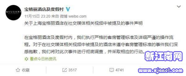 對(duì)此,寶格麗官方向東方網(wǎng)記者回應(yīng):“酒店經(jīng)過了非常認(rèn)真仔細(xì)的內(nèi)部調(diào)查,調(diào)查顯示,事發(fā)當(dāng)晚酒店前臺(tái)同事,遵循了訪客登記流程,在客人提出索要房卡要求時(shí),拒絕了兩次,但在訪客第三次提出要求時(shí),我們并沒有堅(jiān)持堅(jiān)守登記流程,對(duì)于此次事件我們表示道歉,今天酒店已經(jīng)進(jìn)行了服務(wù)流程的強(qiáng)化措施培訓(xùn),確保這個(gè)事情不會(huì)再發(fā)生。”