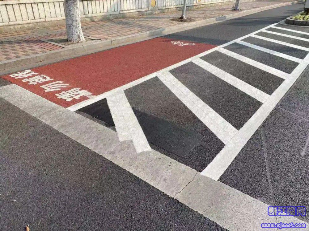 對路段上的斑馬線進(jìn)行升級,規(guī)范設(shè)置菱形人行道預(yù)告標(biāo)識,在停止線內(nèi)噴涂“車讓人”字樣的基礎(chǔ)上,增設(shè)“人快走”字樣,提高路段通行效率,營造“車讓人、人讓車”,相互禮讓的文明交通氛圍。
