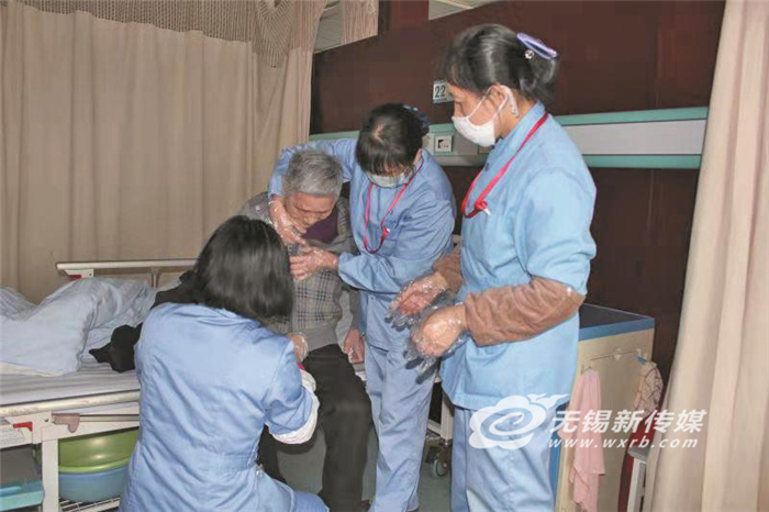 惠山區(qū)重度殘疾人托養(yǎng)中心工作人員照顧老人。