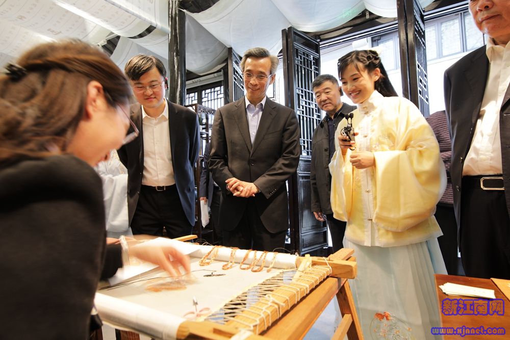 “賞櫻雅集”游園會上,書法表演、評彈《春江花月夜》、舞蹈《墨舞天書》、錫劇折子戲《珍珠塔》、民樂小合奏《無錫景》等精彩演出讓嘉賓感受到無錫濃厚的文化底蘊。漢服主題文創(chuàng)市集、紫砂錫繡泥人現(xiàn)場創(chuàng)作展示等活動則展示出無錫優(yōu)秀的非遺特色文化。