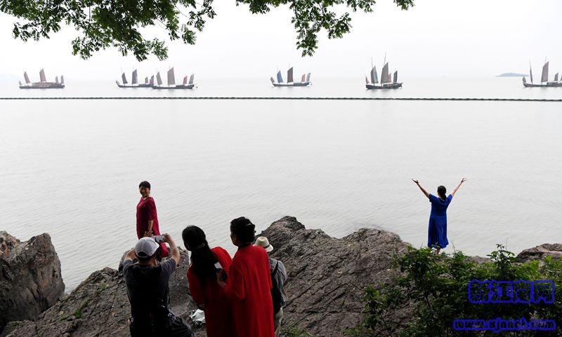 5月19日,游客在黿頭渚景區(qū)欣賞太湖美景。(劉芳輝 攝)