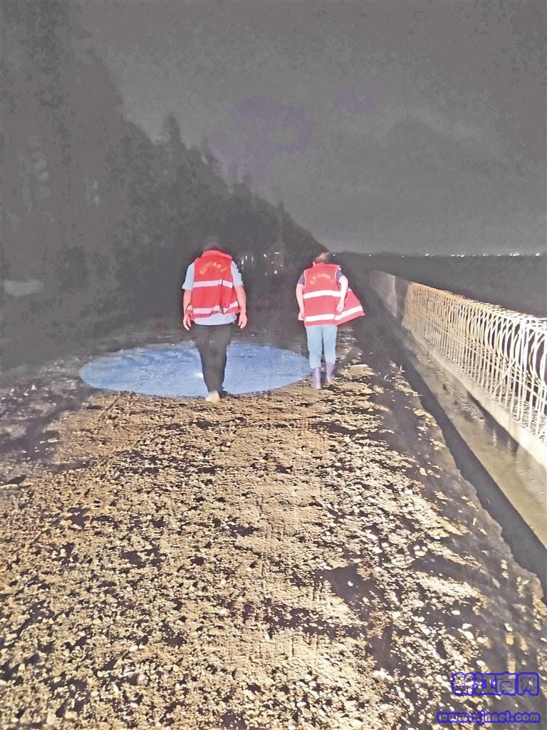 昨日凌晨,周鐵鎮(zhèn)組織人員巡查太湖大堤。