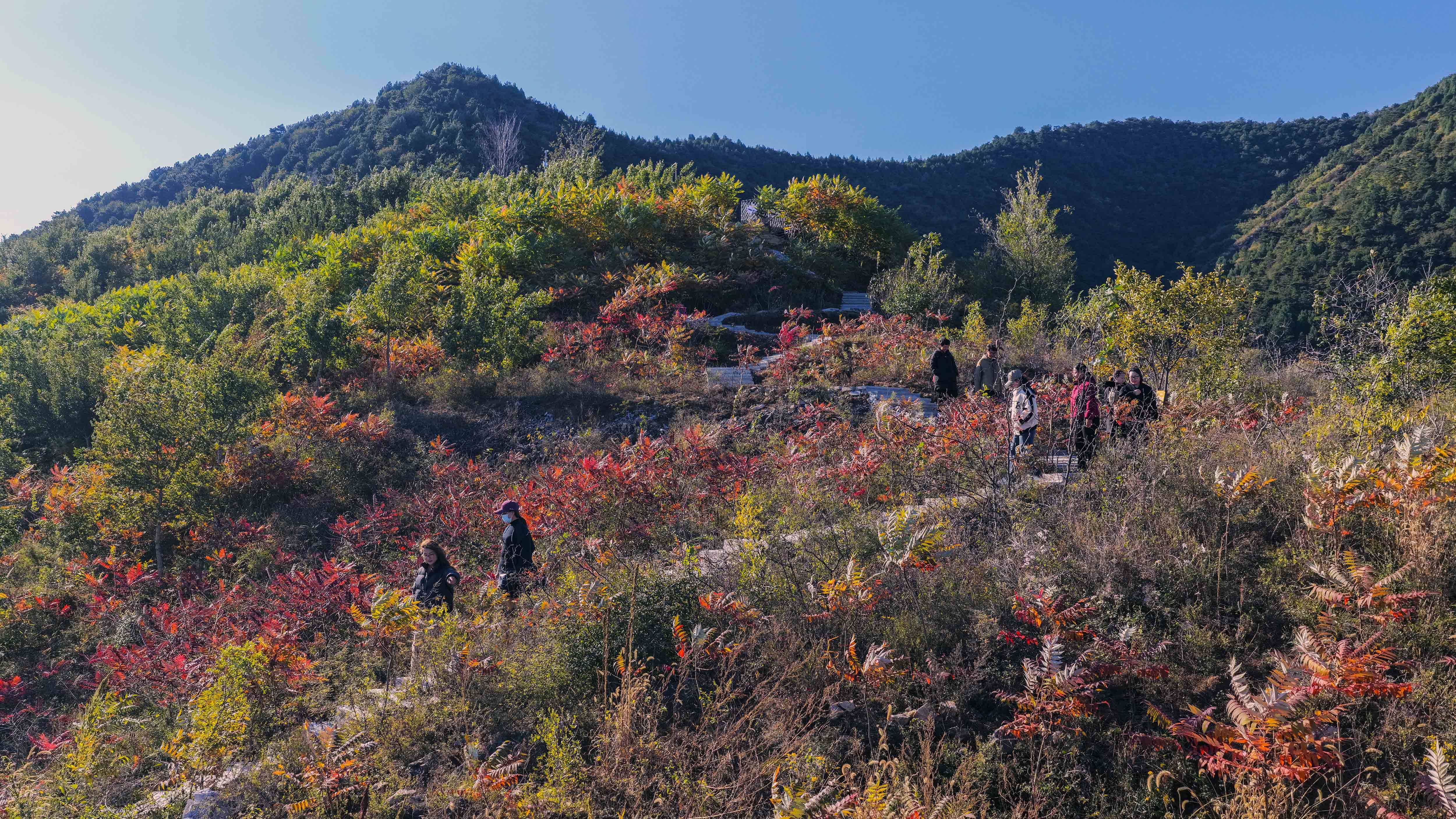 10月19日,游客在河北省遵化市南山常樂谷景區(qū)賞景游玩(無人機(jī)照片)。 新華社發(fā)(劉滿倉 攝)