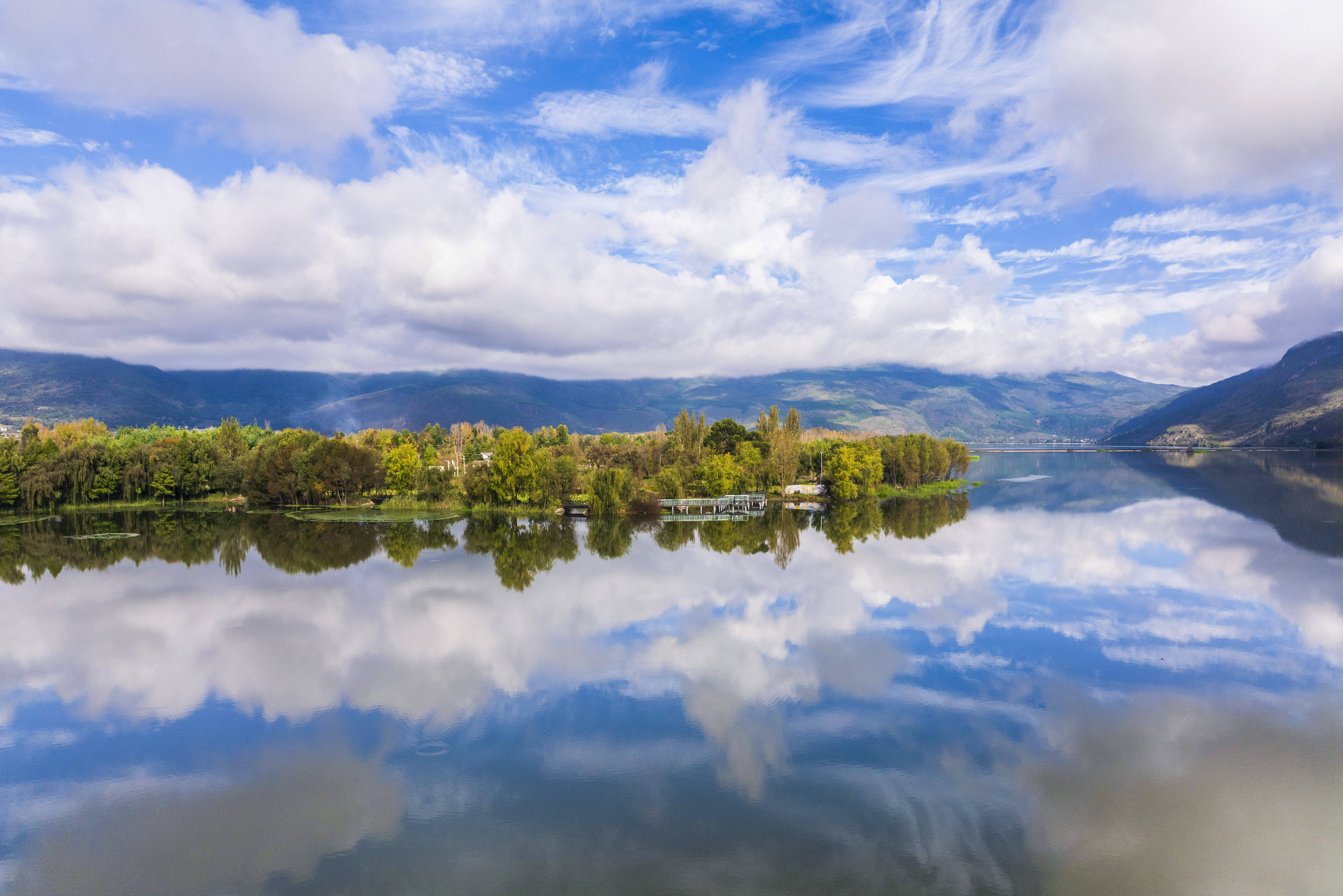 這是10月18日拍攝的云南省大理白族自治州洱源縣茈碧湖(無人機(jī)照片)。 新華社發(fā)(羅新才 攝)