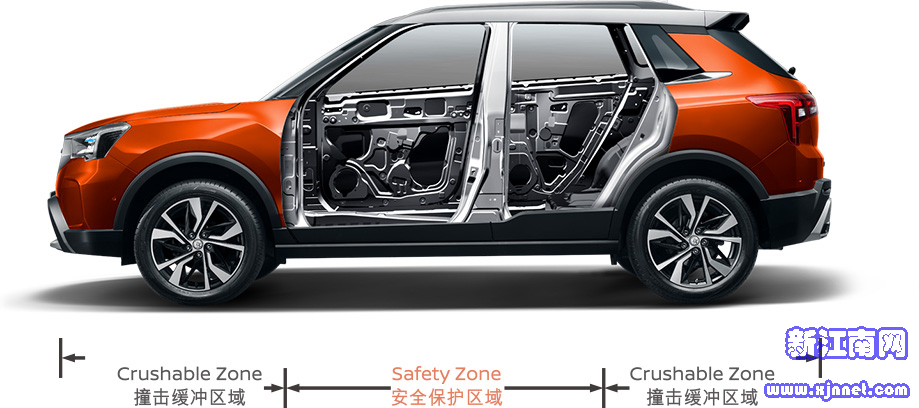 打鐵還需自身硬,啟辰旗下多款SUV車型都應(yīng)用了源自日產(chǎn)的被動(dòng)安全技術(shù)。其中,啟辰T60采用了以中高級(jí)車標(biāo)準(zhǔn)打造的Zone Body區(qū)域車身撞擊緩沖結(jié)構(gòu),在汽車發(fā)生碰撞時(shí),可以更高效地吸收沖撞力,從而保證駕乘人員的安全。另外,為了防止汽車在碰撞過(guò)程中產(chǎn)生過(guò)大形變,新車還采用了1200MPa高強(qiáng)鋼打造的UHSS高剛性車身來(lái)抵御沖擊。