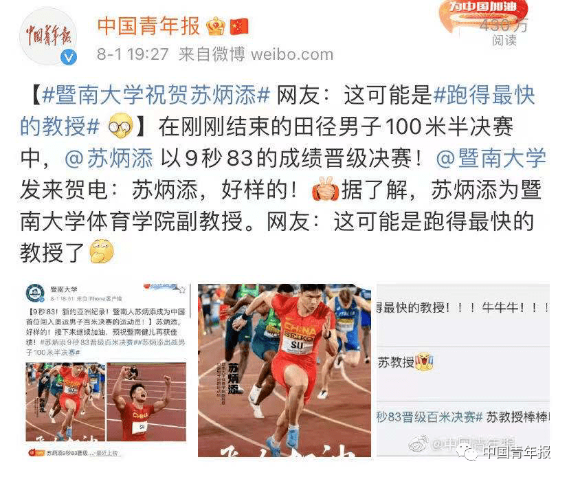 而這一次蘇炳添的熱度,被暨南大學“蹭”上了