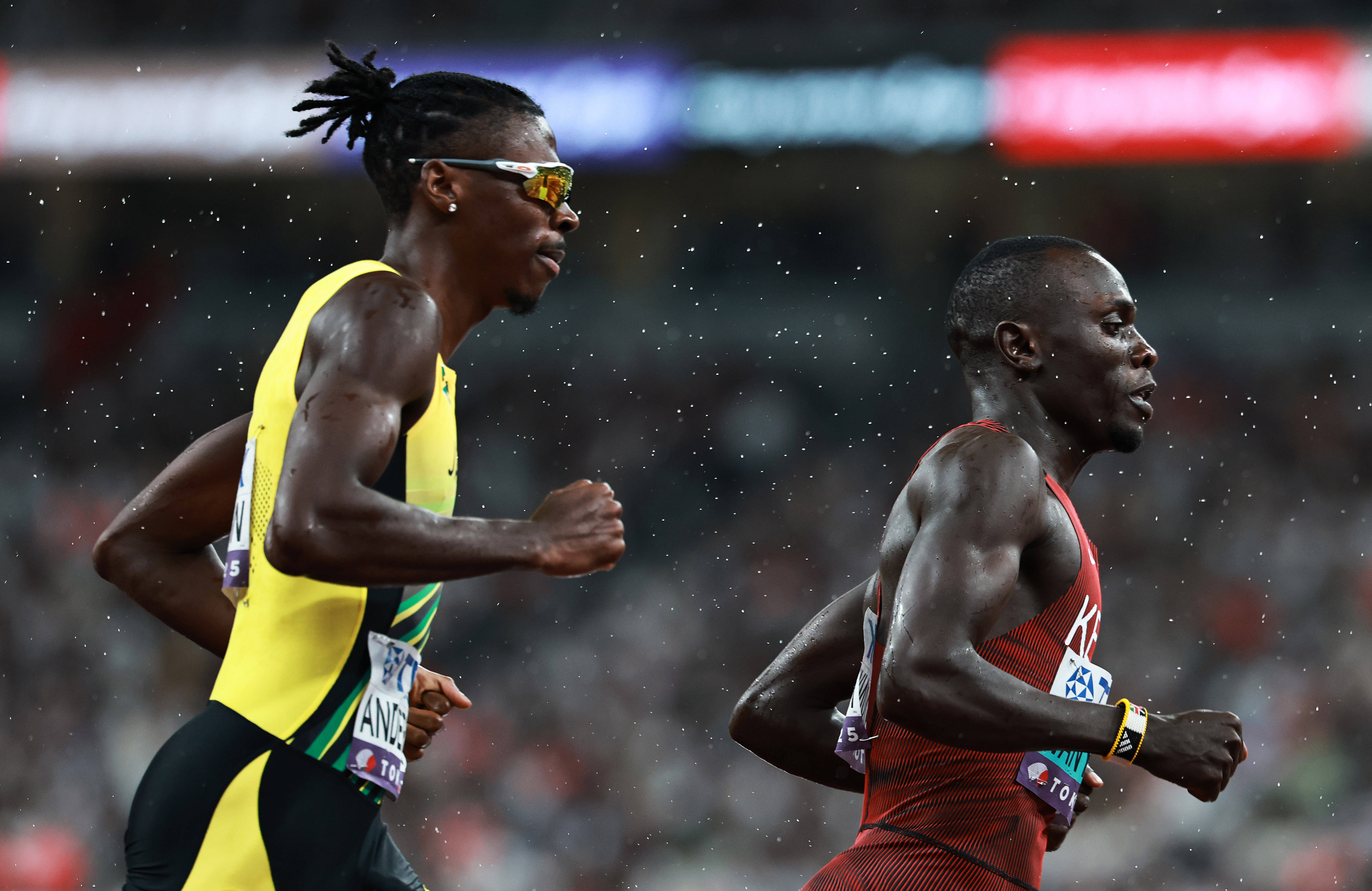 9月18日,牙買加選手安德森(左)和肯尼亞選手瓦尼奧尼在半決賽中。 新華社記者 江漢 攝
