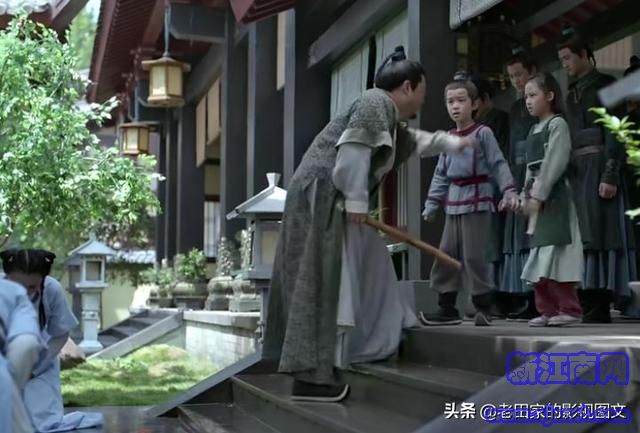 這個(gè)角色一出場時(shí)正在打奴婢,因?yàn)樾〗阏也坏搅耍鋵?shí)小姐和少爺(范閑)一起出去玩去了,隨后兩小孩回家,周管家一看小姐回來了,趕緊獻(xiàn)殷勤地上前問候,這里他有一個(gè)小動(dòng)作,他把范閑這個(gè)小少爺往邊上推了一把,只顧著向小姐范若若噓寒問暖。