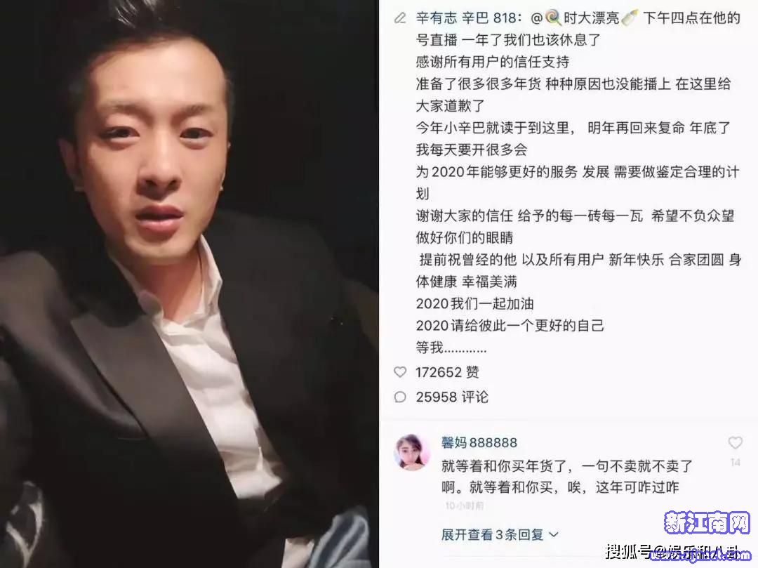 凌晨辛巴在快手號發(fā)布作品表示,準(zhǔn)備了很多年貨,因為種種原因,沒能播上,給大家道歉,今年就到這里,明年再回來復(fù)命!辛巴這宣布暫退,不少黑粉質(zhì)問辛巴說好的捐款呢?