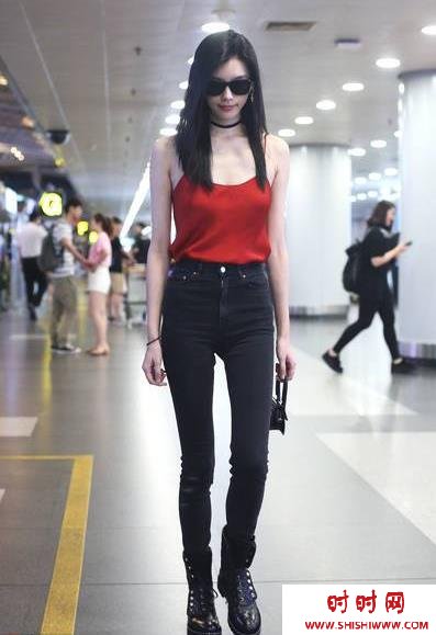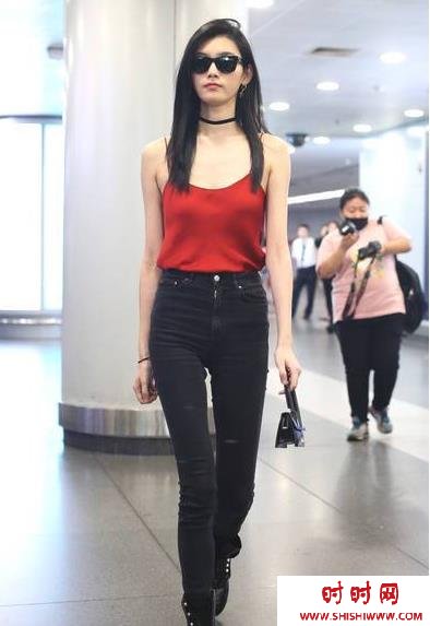 2018年7月9日,北京,奚夢瑤現(xiàn)身機(jī)場。當(dāng)天她穿一件紅色吊帶衫,黑色長褲秀出兩條大長腿,戴著墨鏡,滿滿超模氣場。